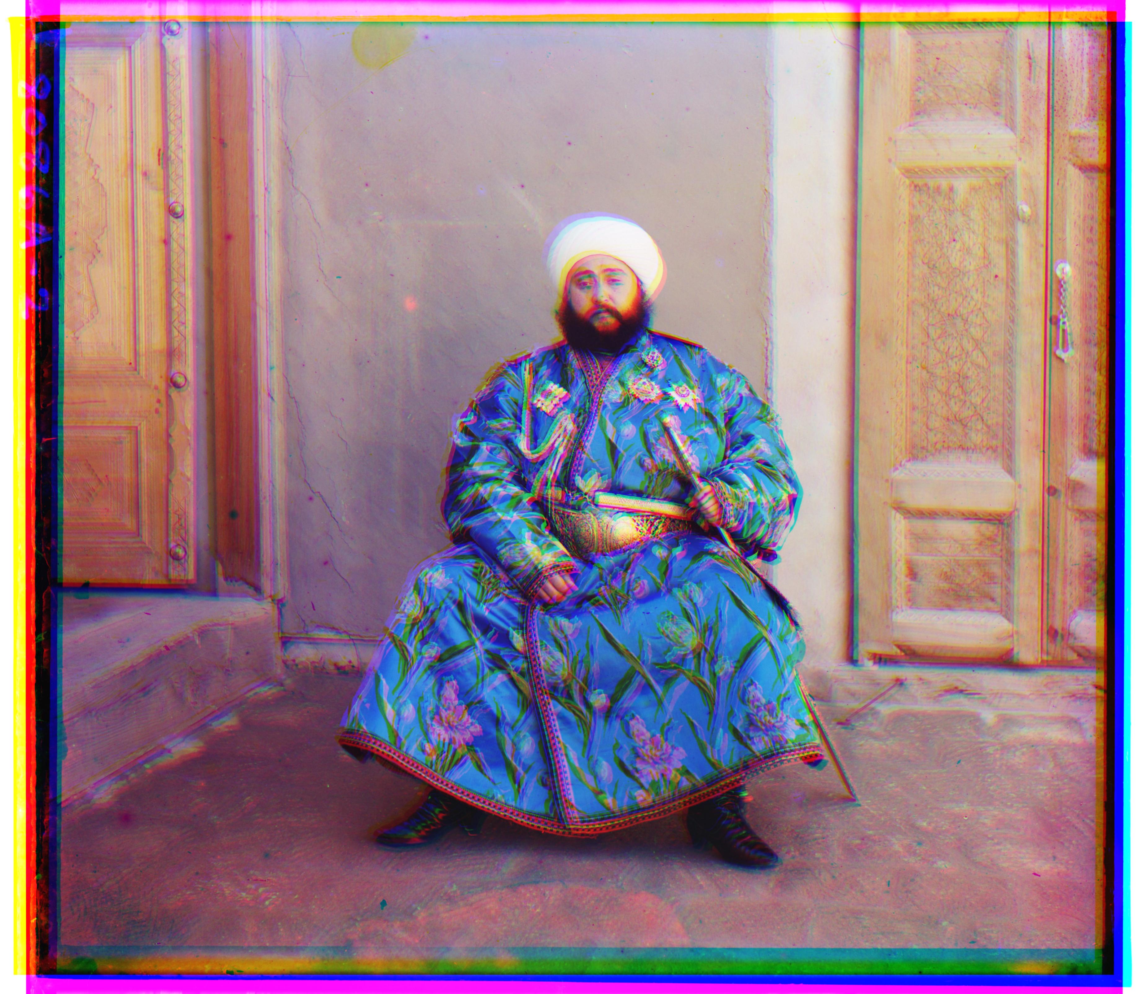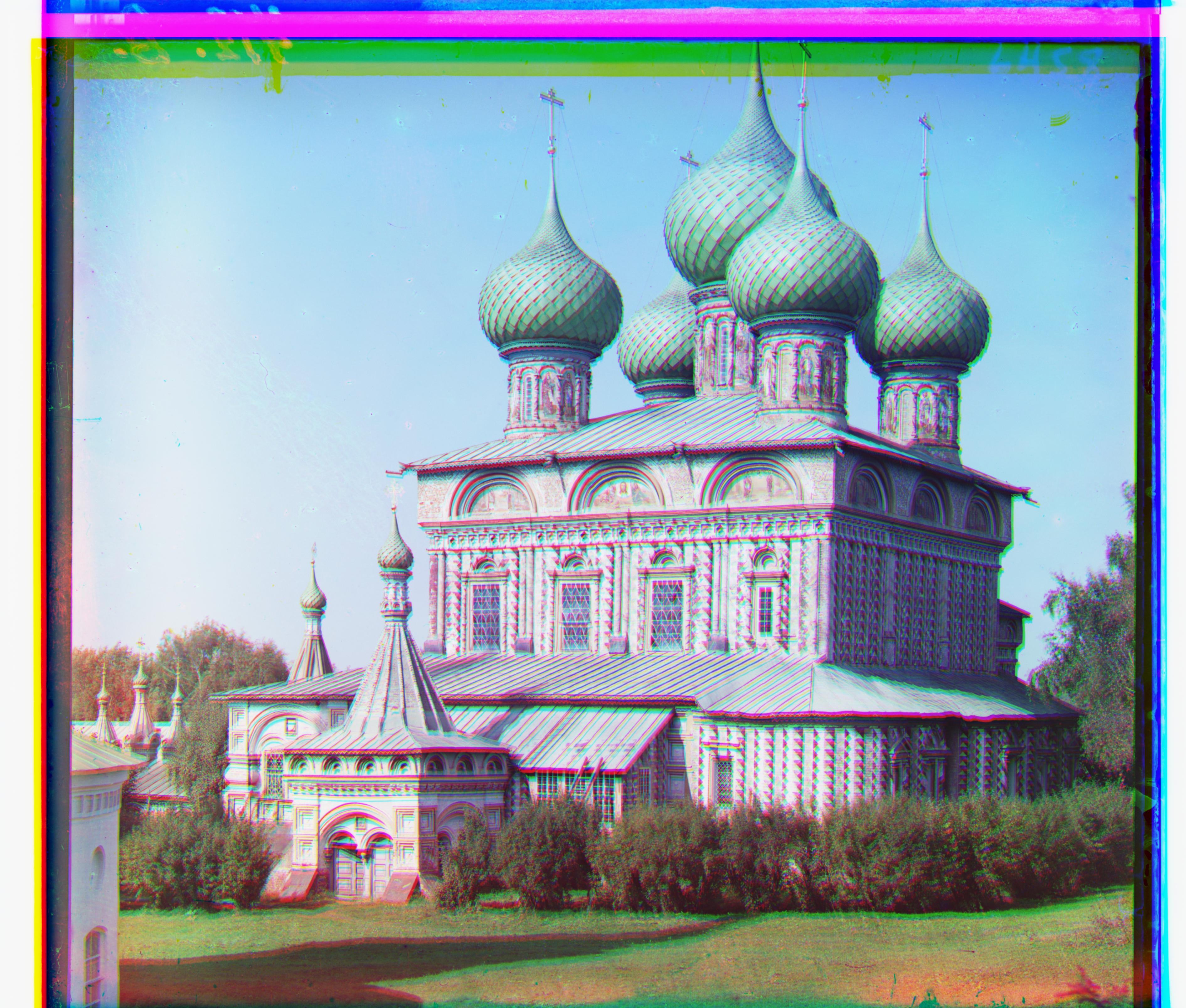 Some of the images shown used alignment on the green channel instead of alignment on the blue channel.