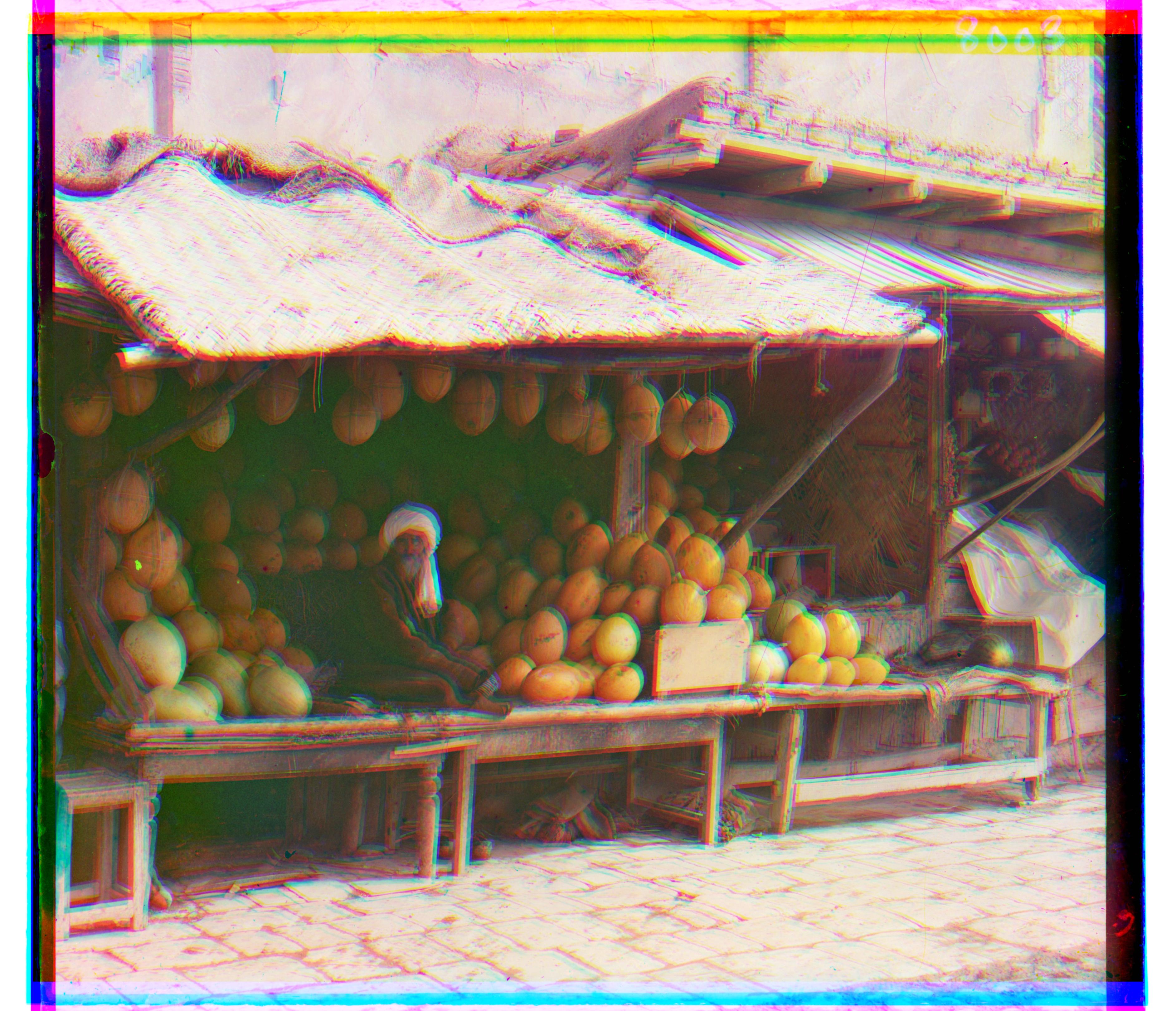 I am given a collection of 3 black-and-white images, corresponding with pixel-values of RGB of a complete image. In this project, I align the 3 images with one another to produce a colored image. Blurriness in the images indicates poor alignment.